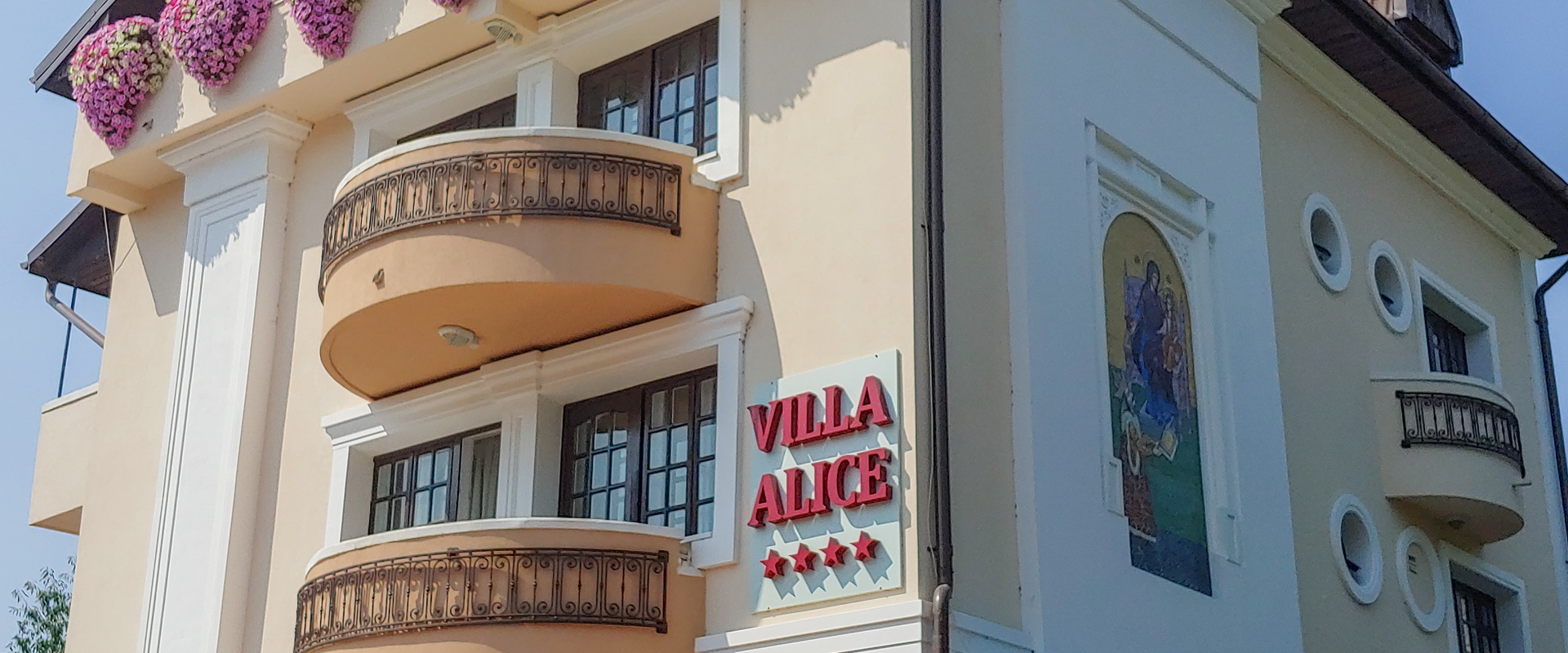 Pentru cei aflaţi în căutarea locaţiilor situate ultracentral pentru cazare în Suceava, Villa Alice este o alegere foarte inspirată. Pensiunea a fost renovată recent şi oferă condiţii excelente de cazare, unele camere chiar ridicându-se la exigenţele unităţilor de 5 stele, oferind paturi mari şi confortabile, baie cu jacuzzi şi hidromasaj, televizoare mari şi un întreg ansamblu de mobilier şi decoraţiuni de foarte bună calitate. Desigur, camerele sunt structurate în oferta pensiunii după spaţiul oferit, în condiţii de 3*, 4* şi 5*.